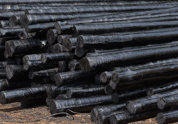 天澤木業(yè)備貨防腐油木桿,迎接年后供應高峰期。