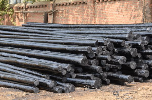 使用克魯蘇油等防腐劑,浸入木桿根部,浸注長度應(yīng)比木桿的埋深增加一定長度。